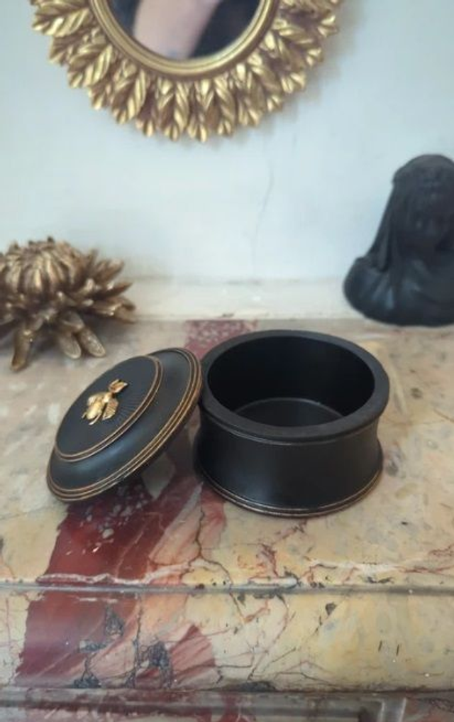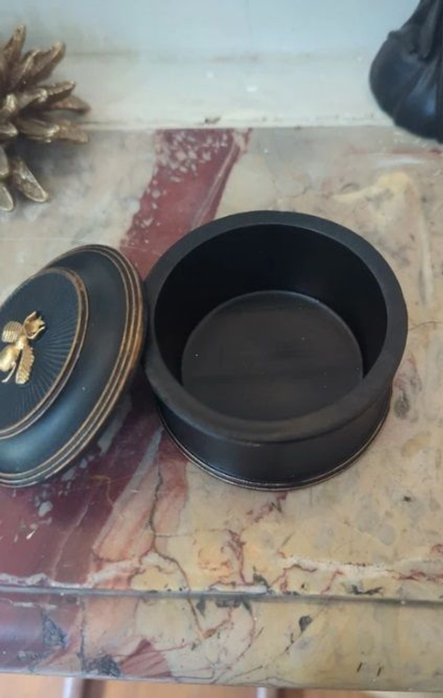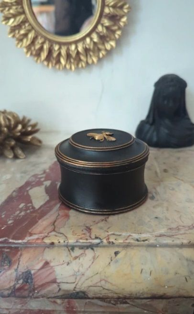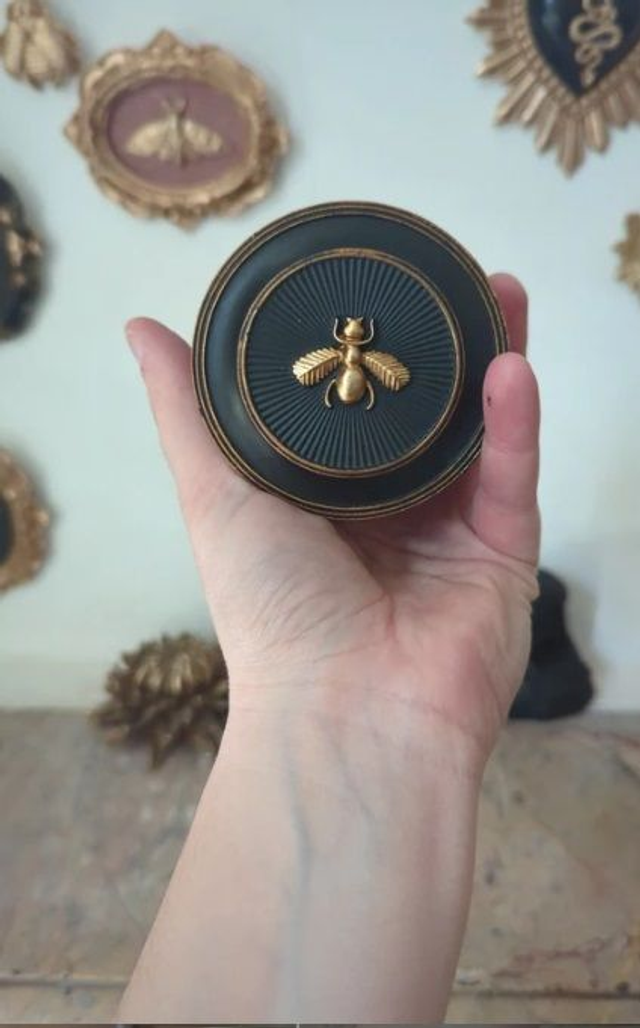 🌙 Sublimez votre intérieur avec cette boîte décorative raffinée, alliant élégance classique et détails luxueux. Conçue dans un fini noir mat rehaussé de liserés dorés, cette pièce attire le regard par son couvercle orné d’une abeille dorée en relief, symbole de royauté et de prospérité.
