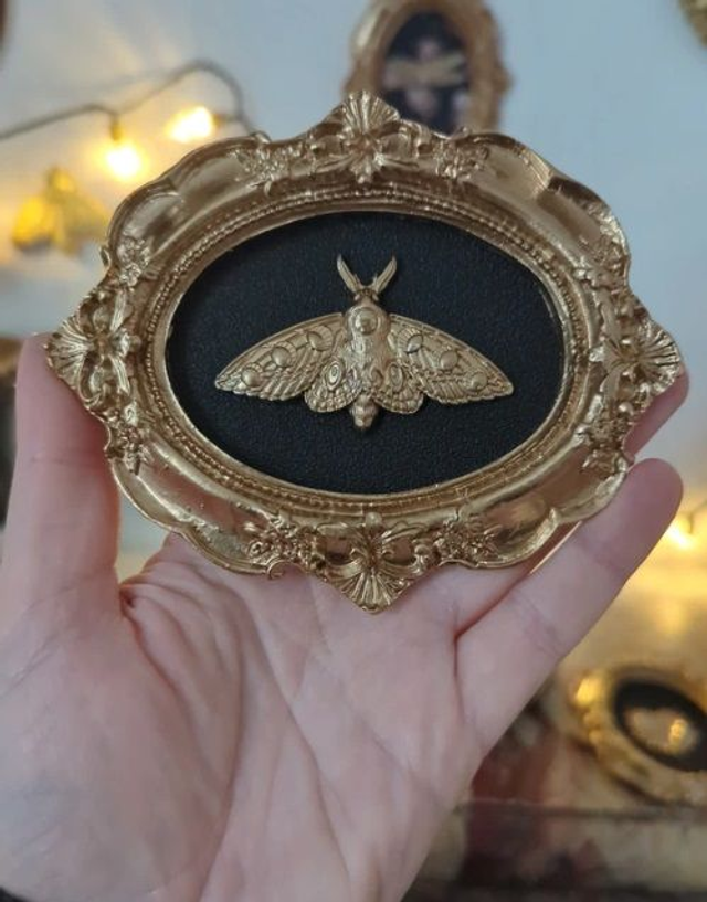 🌙 Plongez dans une ambiance élégante et mystérieuse avec ce cadre baroque doré, mettant en valeur un superbe papillon de nuit sur fond noir.