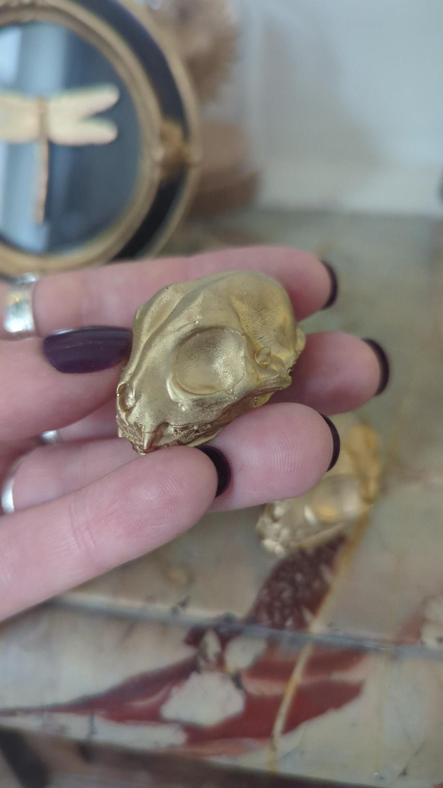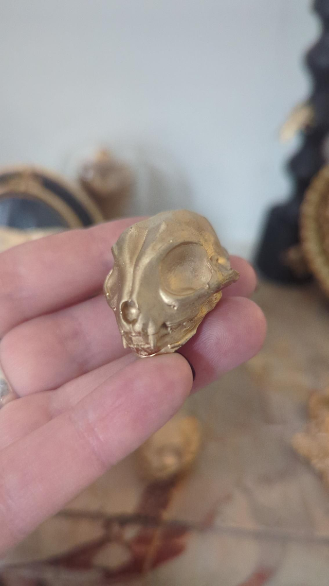 Lot de 2 crâne de chat doré